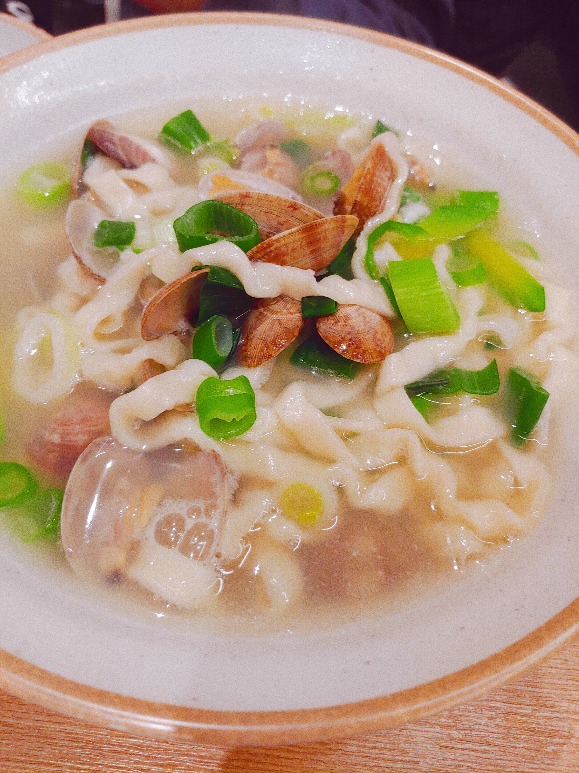 - 음식이 죄다 맛있습니다. 이게 기본칼국수인데요 국물 시원한 거 당연하구요 파 많이 넣어주시는 거 보세요 파를 아끼지 않으세요 혹 파 싫어하시는 분들 계시면 좀 덜어달라고 하셔도 될정도로? 많이 주십니다 덕분에 국물하는 정말 시원하게 잘 먹었습니다 바지락도 가격대비 굉장히 실하게 많이 들어있구요 이곳 정말 가격대비 갓성비가 굉장히 좋은 곳입니다.